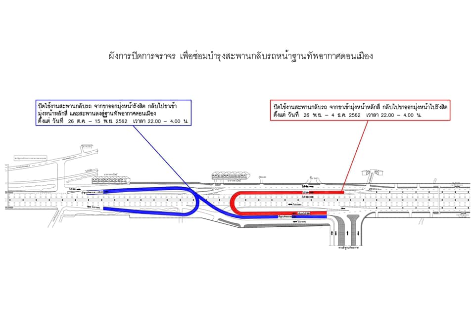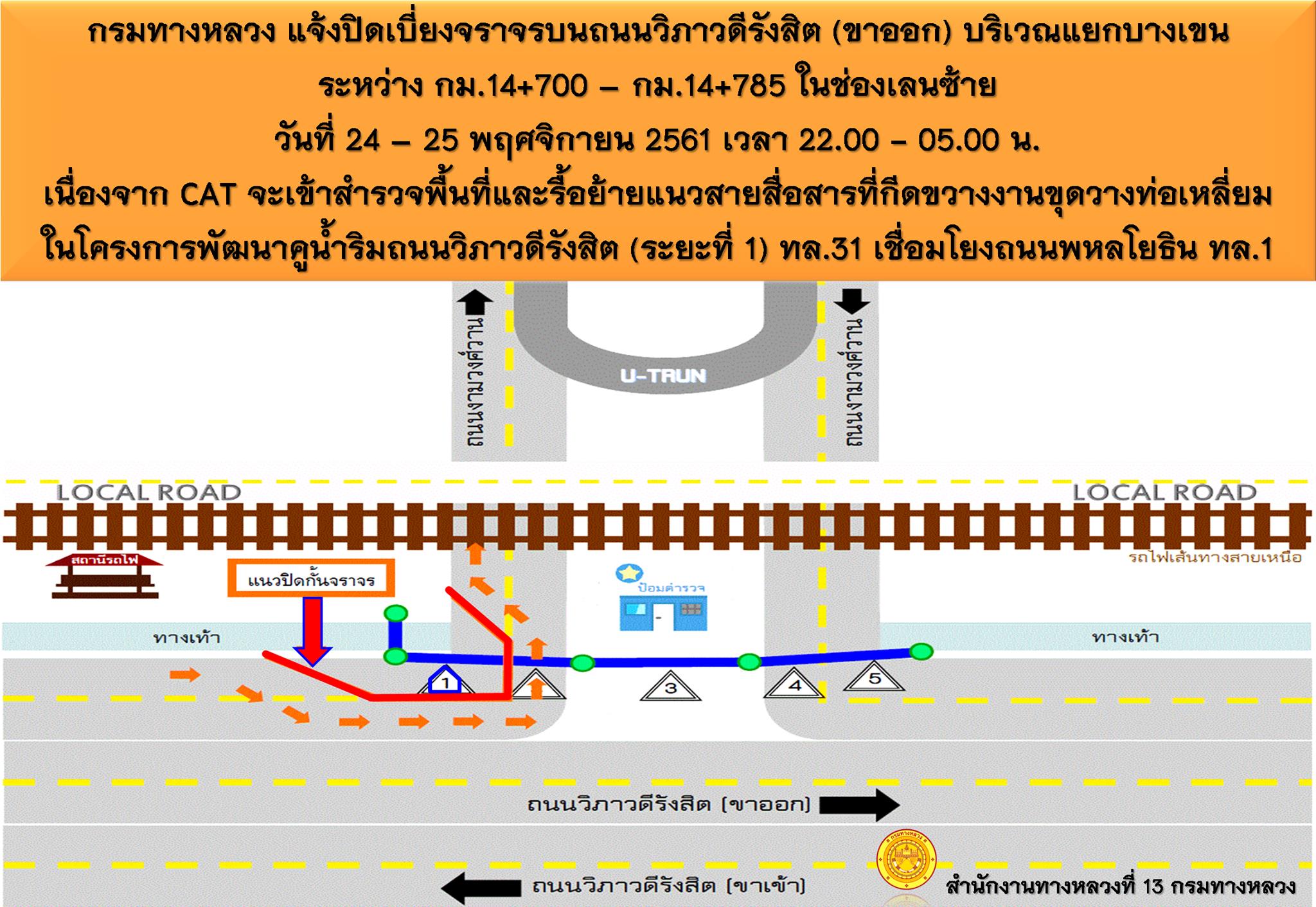 กรมทางหลวง โดย สำนักงานทางหลวงที่ 13 แจ้งปิดเบี่ยงจราจรบนถนนวิภาวดีรังสิต (ขาออก)