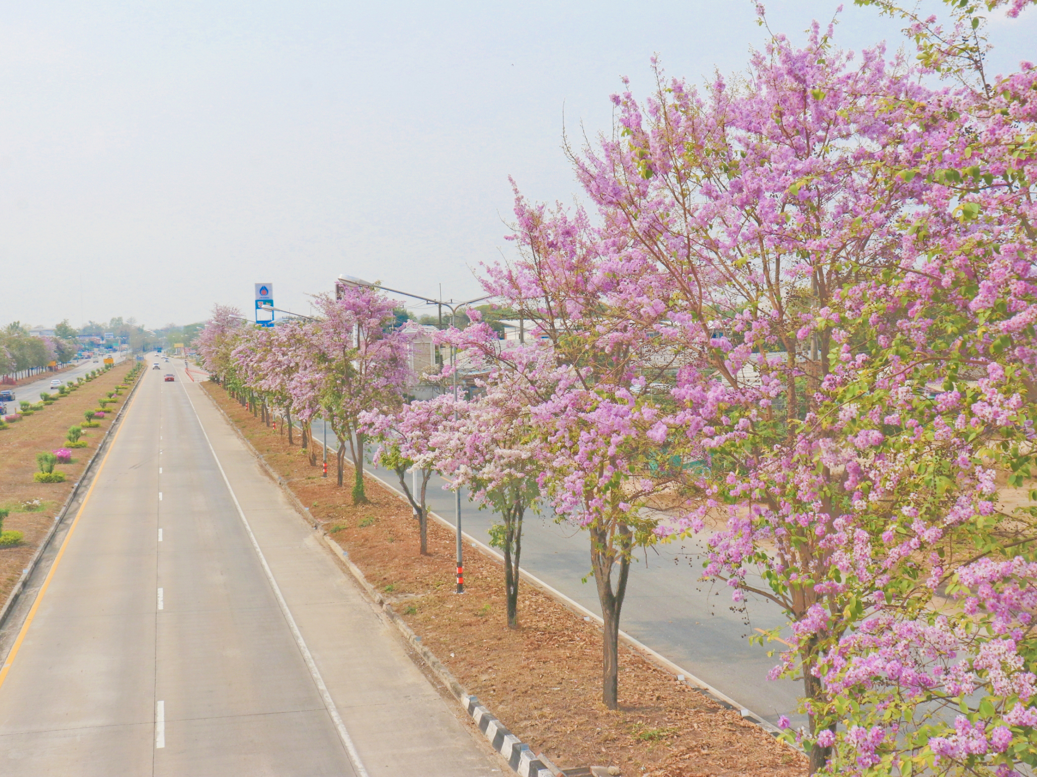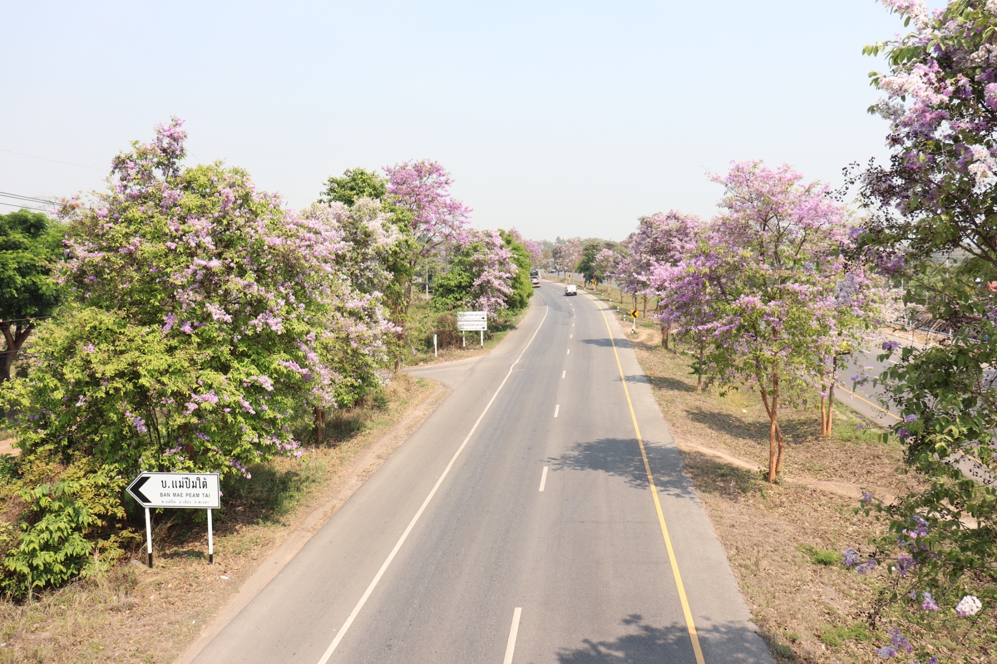 สำหรับต้นตะแบกเป็นไม้ยืนต้นกึ่งผลัดใบขนาดกลางถึงขนาดใหญ่ มีความสูงได้ประมาณ 15 - 35 เมตร เรือนยอดเป็นรูปเจดีย์ต่ำ ๆ แตกกิ่งก้านสาขาออกรอบต้น เกลี้ยงดอกออกเป็นช่อที่ปลายกิ่งโค้งชูเหนือเรือนยอด ดอกบานวันแรกสีม่วงอมชมพู ต่อมาเปลี่ยนเป็นสีขาว ทนแล้ง นิยมปลูกริมถนนทางเดิน ทั้งนี้ กรมทางหลวงขอความร่วมมือประชาชนโปรดจอดรถบริเวณสองข้างทางอย่างระมัดระวังระหว่างทำการถ่ายภาพ เพื่อป้องกันปัญหาการจราจรติดขัดและอุบัติเหตุที่อาจเกิดขึ้น รวมถึงไม่เป็นการกีดขวางการจราจรบนทางหลวง เดินทางอย่างปลอดภัย และใส่ใจสิ่งแวดล้อม ปฏิบัติตาม "ชีวิตวิถีใหม่ ขับขี่อย่างปลอดภัย ไร้อุบัติเหตุ" เพื่อความสะดวกปลอดภัยของผู้ร่วมทาง หากต้องการสอบถามสภาพเส้นทาง สภาพการจราจรหรือขอความช่วยเหลือต่างๆ สามารถติดต่อได้ที่ สายด่วนกรมทางหลวง 1586 โทรฟรี ทุกเครือข่ายตลอด 24 ชม.