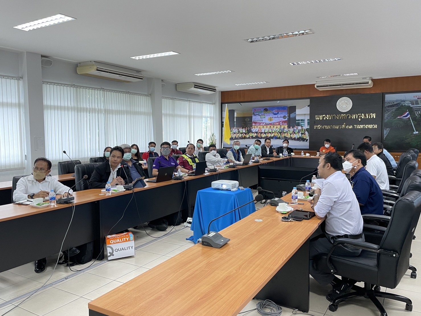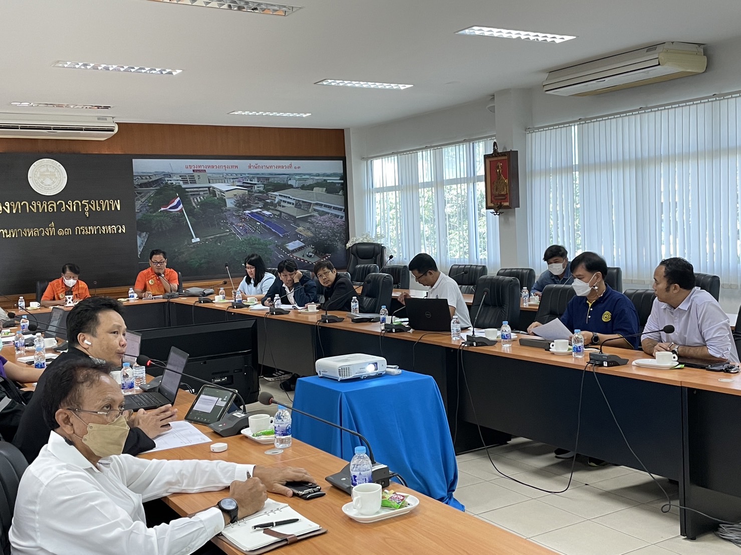 นายพรพรต สุริยนต์ ผู้อำนวยการสำนักงานทางหลวงที่ 13 เป็นประธานการประชุม งานก่อสร้างโครงการพัฒนาคูน้ำริมถนนวิภาวดีรังสิต ระยะที่ 3 บริเวณพื้นที่ทับซ้อนของการก่อสร้างรถไฟฟ้าเชื่อม 3 สนามบิน และรถไฟความเร็วสูง ของการรถไฟแห่งประเทศไทย พร้อมด้วย เจ้าหน้าที่กรมทางหลวง และผู้แทนการรถไฟแห่งประเทศไทย ณ ห้องประชุมแขวงทางหลวงกรุงเทพ เพื่อหาแนวทางเพิ่มประสิทธิภาพการระบายน้ำริมถนนวิภาวดีรังสิต โดยขอใช้พื้นที่ของการรถไฟแห่งประเทศไทยในการก่อสร้างรางระบายน้ำ