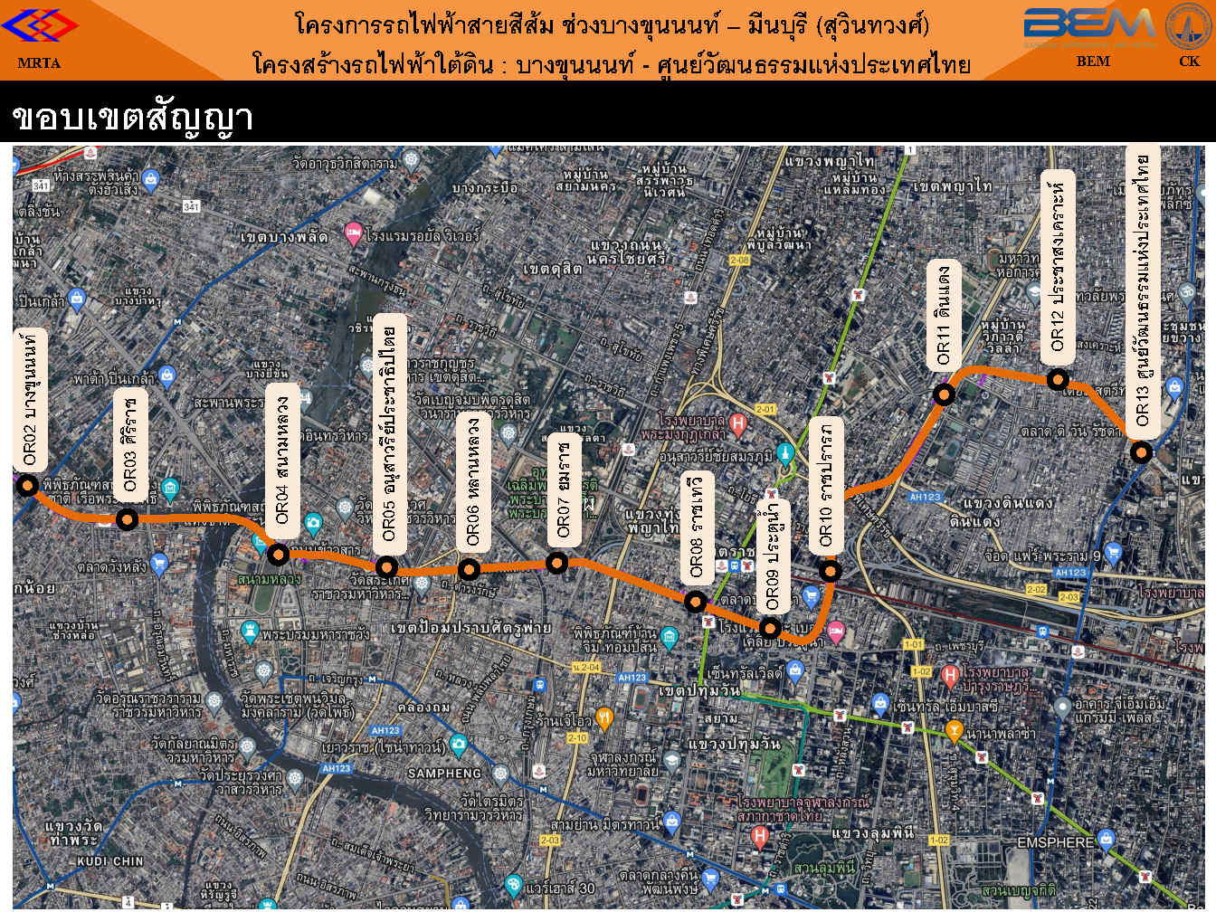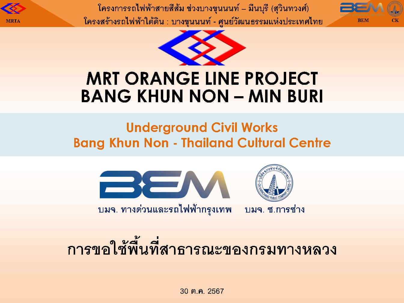 การขอใช้พื้นที่ของกรมทางหลวงก่อสร้าง โครงการรถไฟฟ้าสายสีส้ม ช่วงบางขุนนนท์ - มีนบุรี (สุวินทวงศ์) โครงการรถไฟฟ้าใต้ติน : บางขุนนนท์ - ศูนย์วัฒนธรรมแห่งประเทศไทย