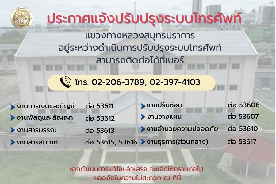 หรือสามารถติดต่อสอบถามได้ที่ 02-206-3789 กด 1 ต่อ 53613, 53617 และ 02-397-4103