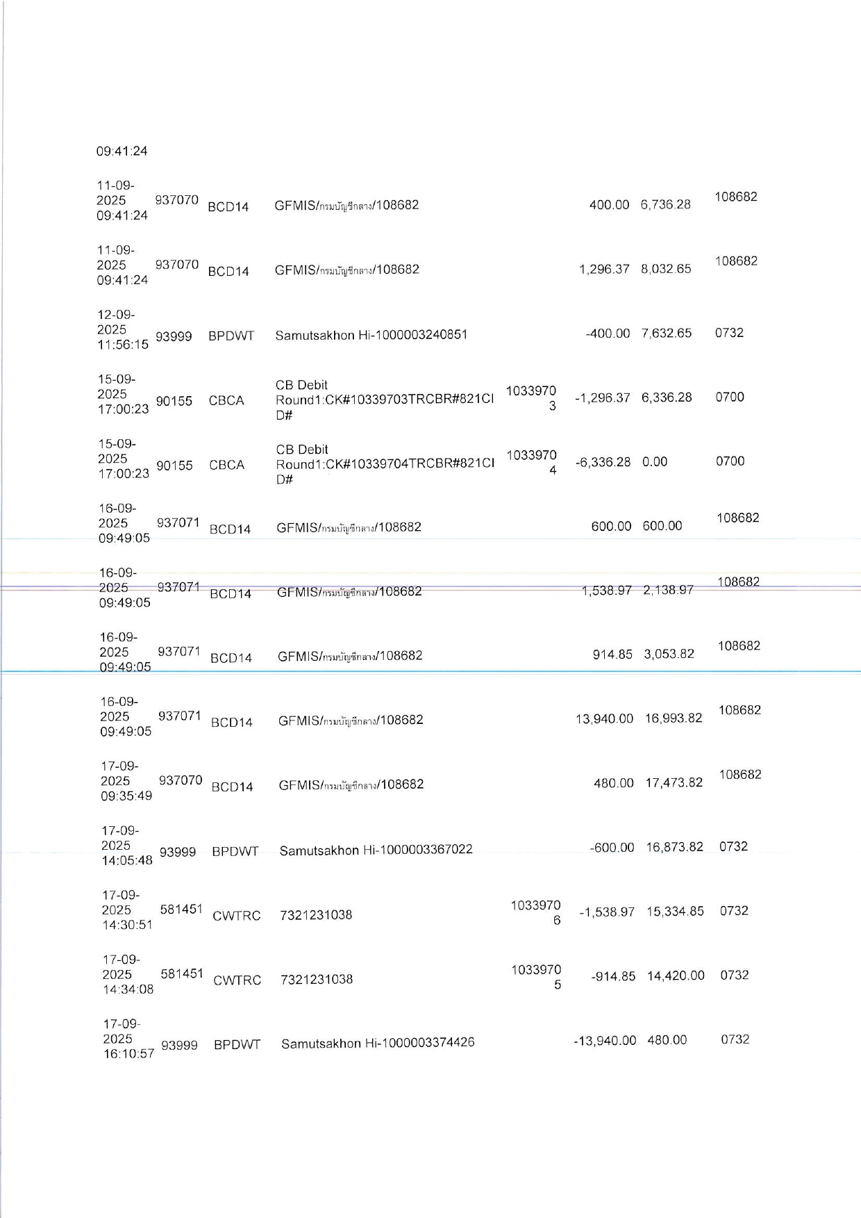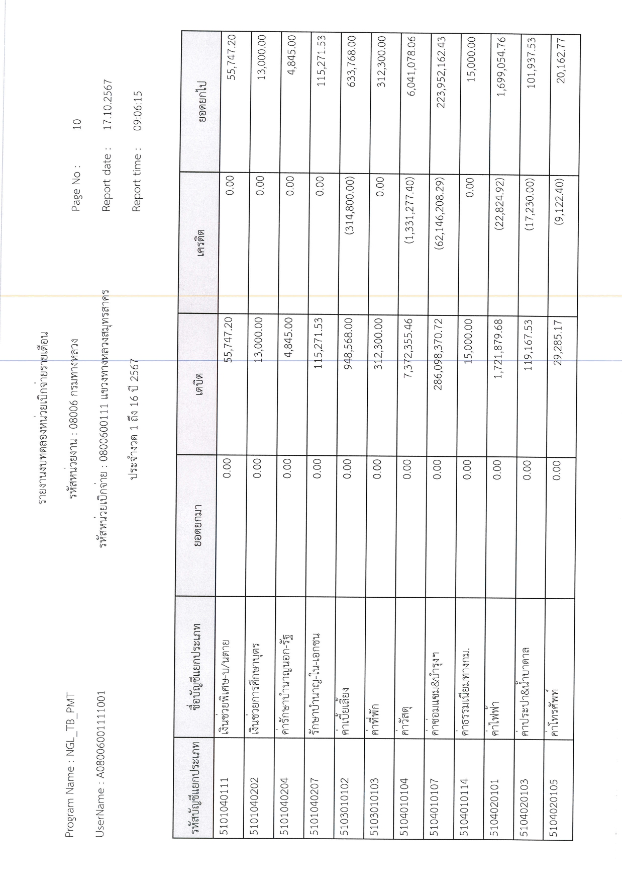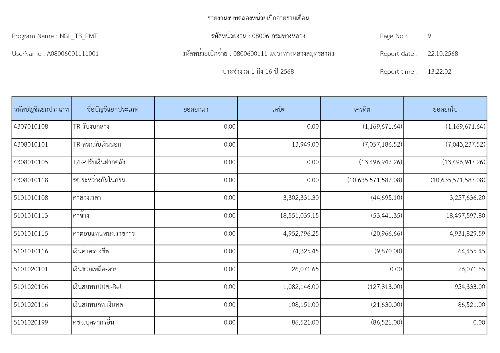 รายงานรายละเอียดรายการบัญชีที่สำคัญประกอบงบทดลองประจำเดือน กันยายน 2568