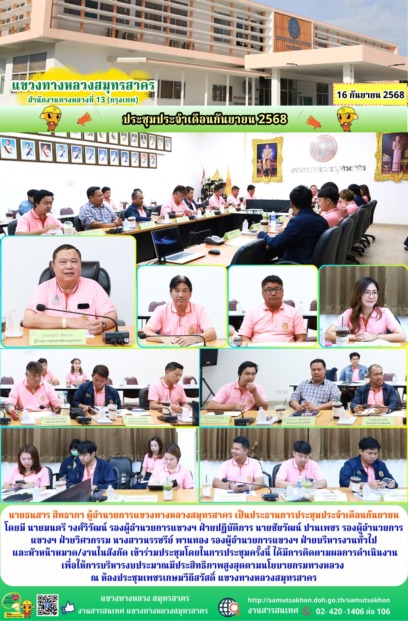 แขวงทางหลวงสมุทรสาคร ประชุมติดตามผลการดำเนินงานประจำเดือนกันยายน 2568