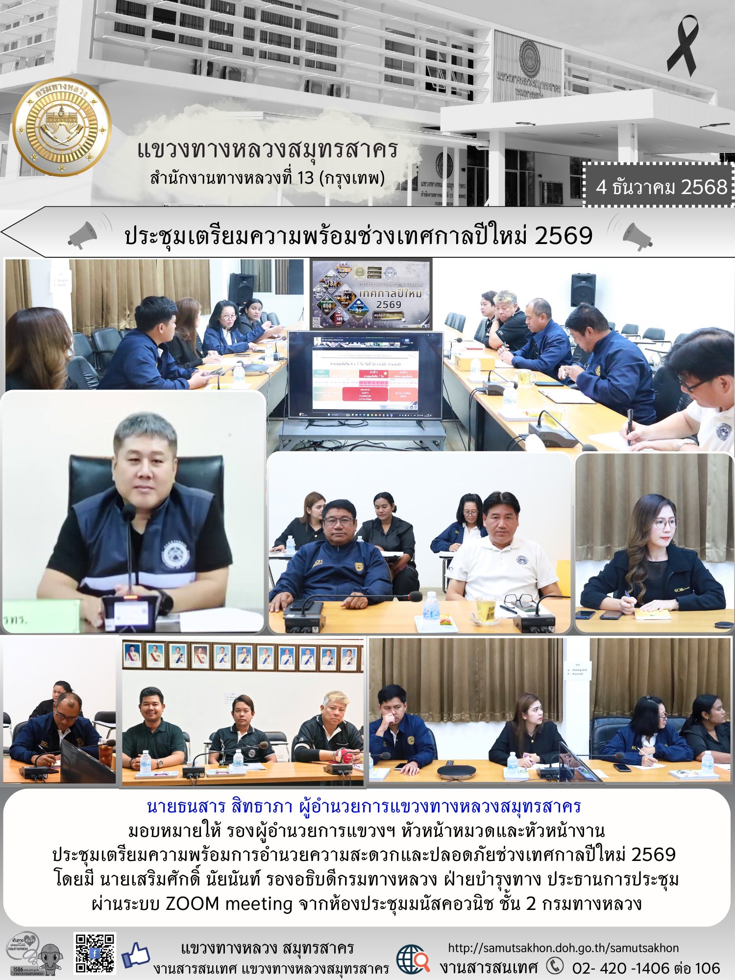 ประชุมติดตามผลการดำเนินงานประจำเดือนธันวาคม 2568 และเตรียมความพร้อมเทศกาลปีใหม่ 2569