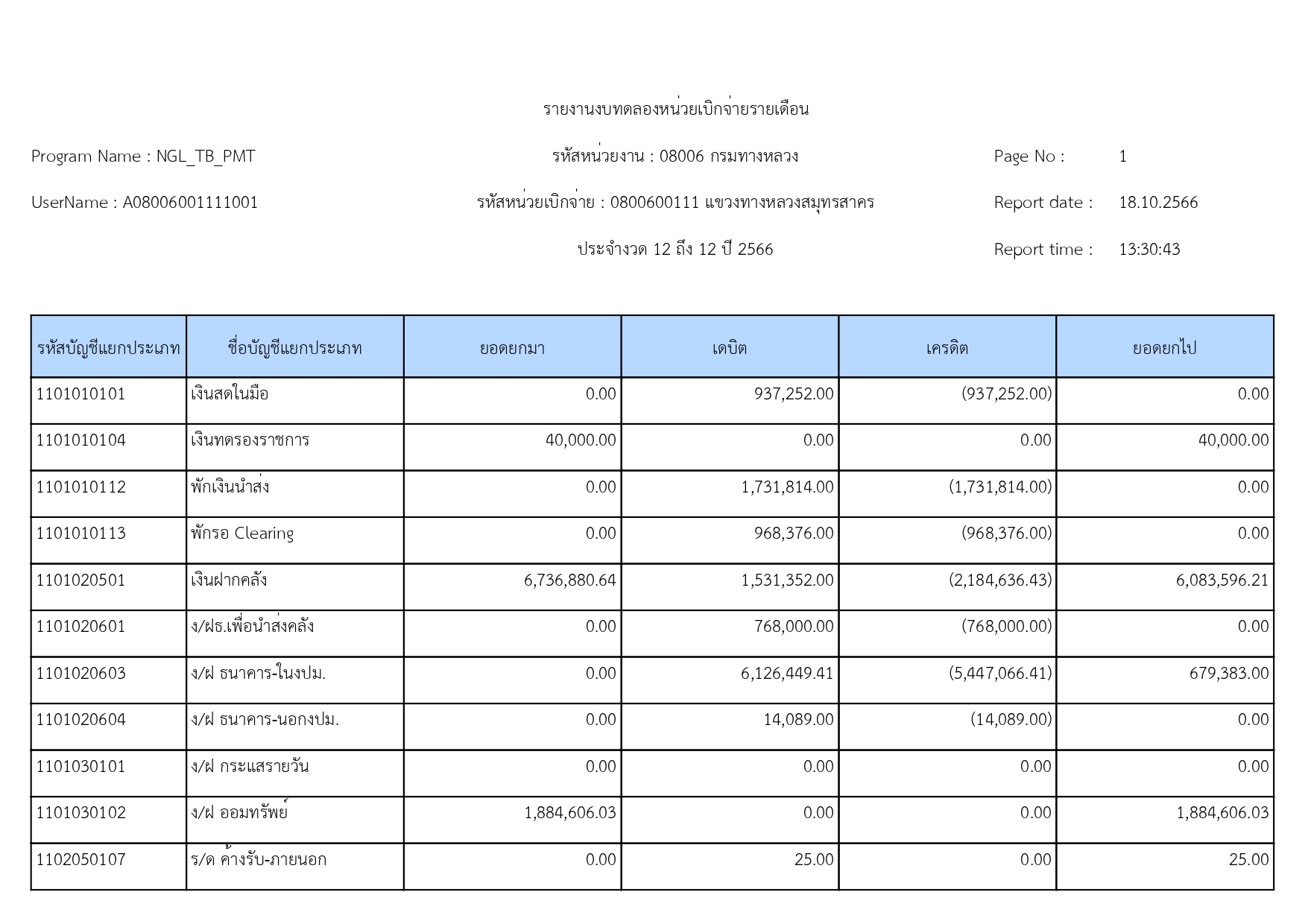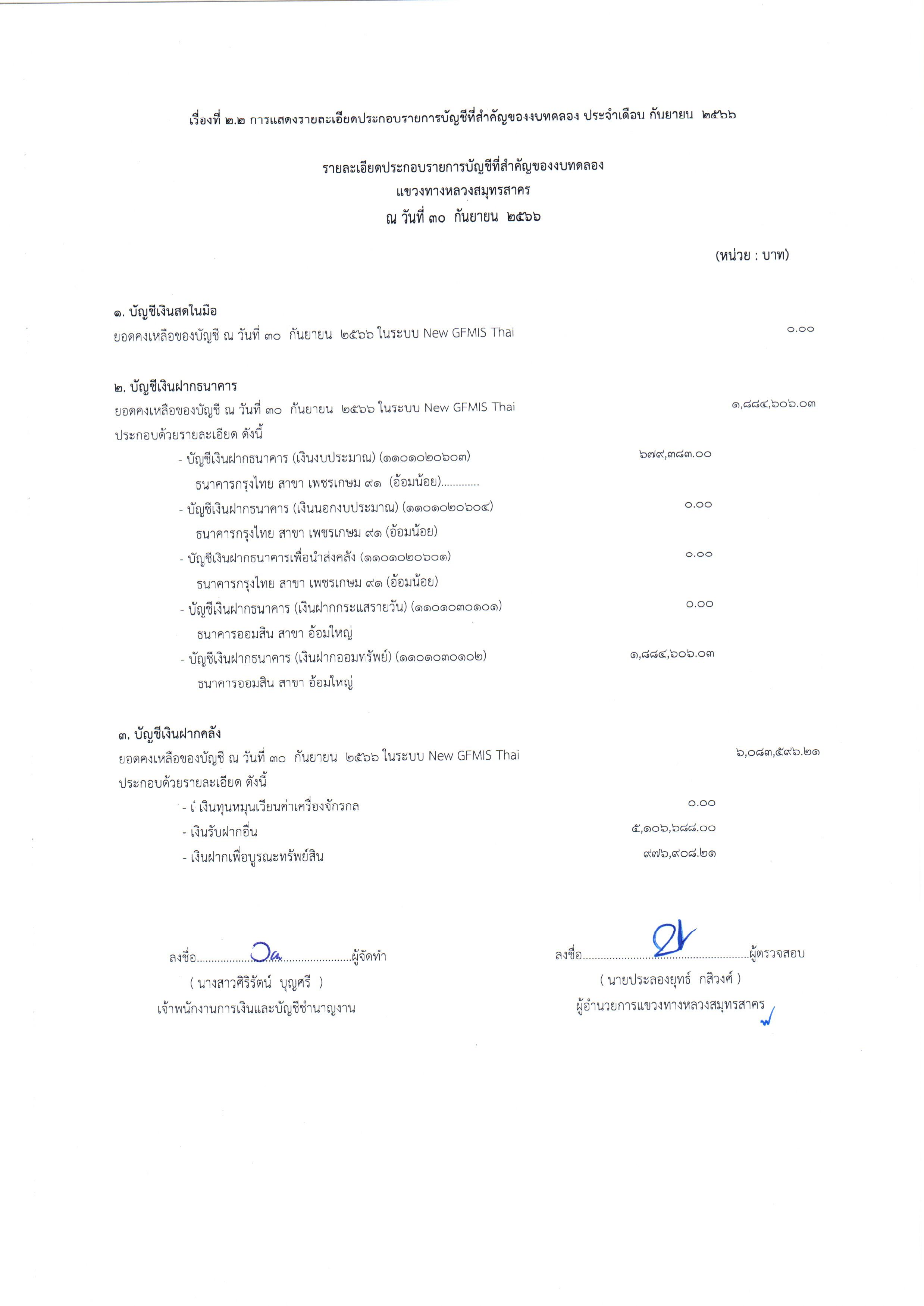 การแสดงรายละเอียดประกอบรายการบัญชีที่สำคัญของงบทดลองประจำเดือนกันยายน 2566 |