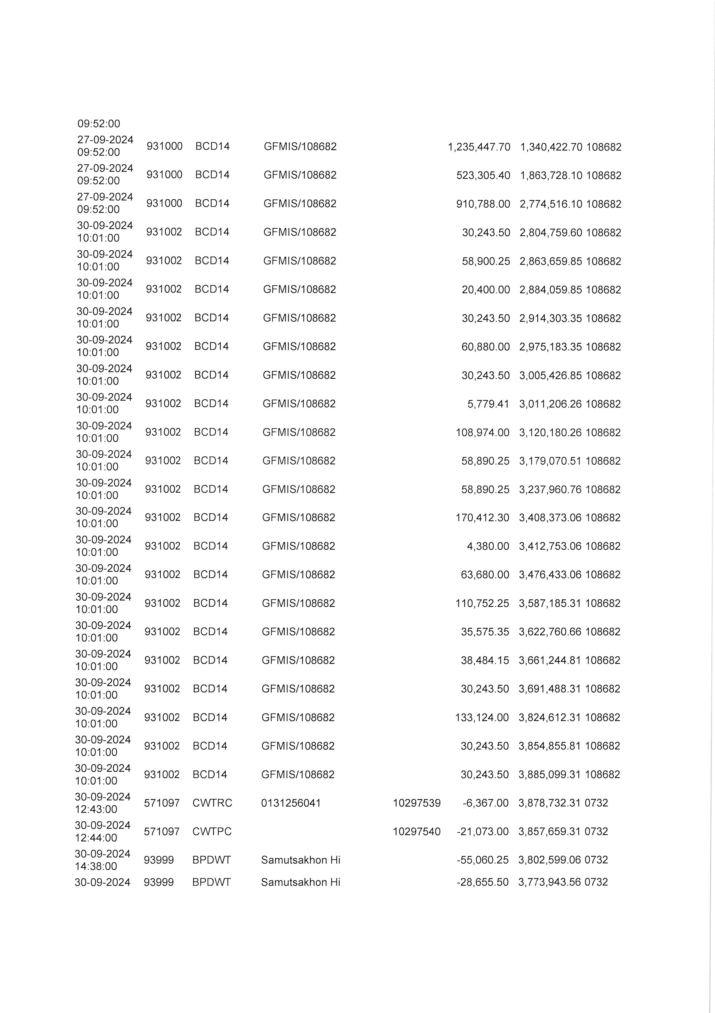 การแสดงรายละเอียดประกอบรายการบัญชีที่สำคัญของงบทดลองประจำเดือนกันยายน 2567 |
