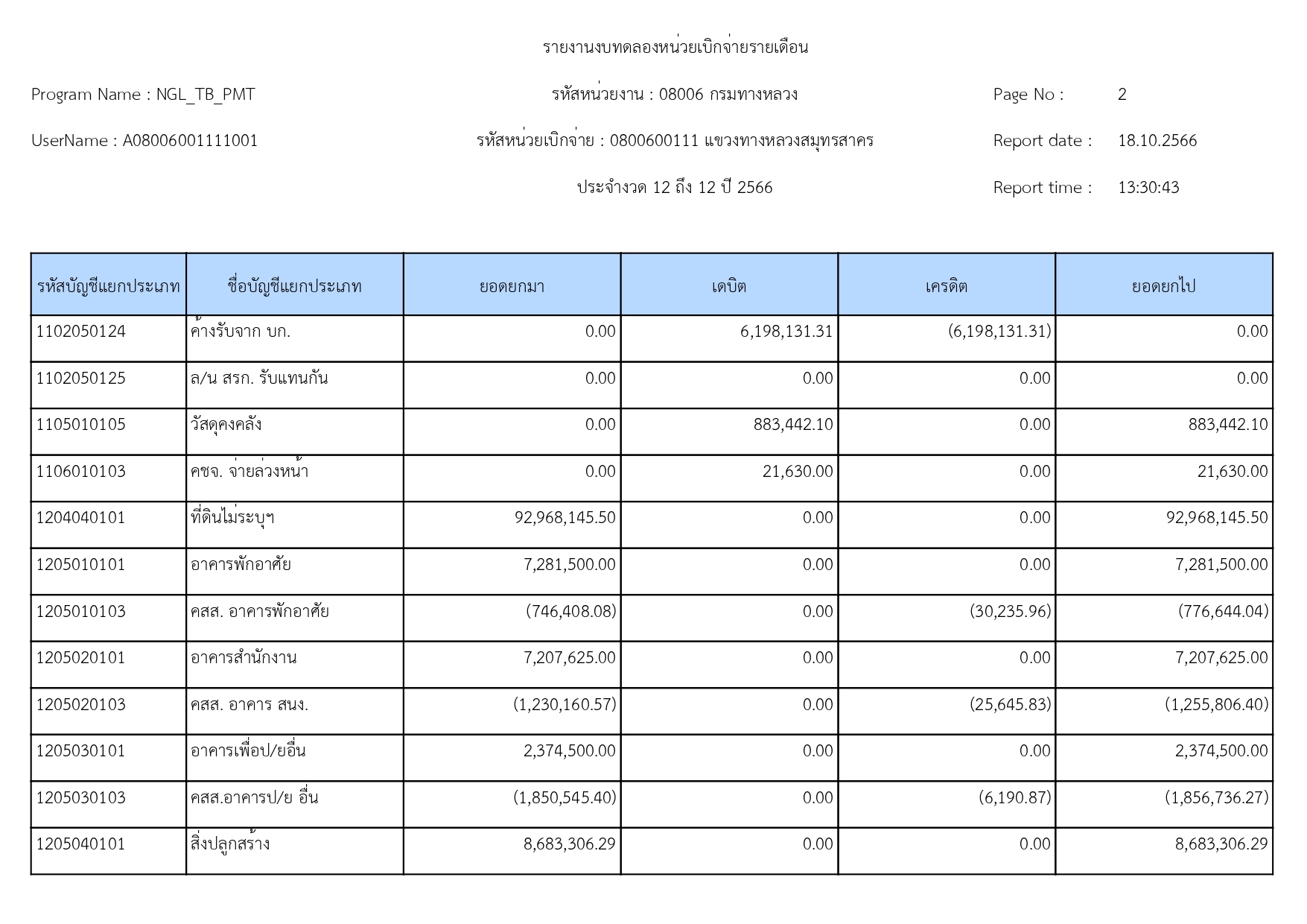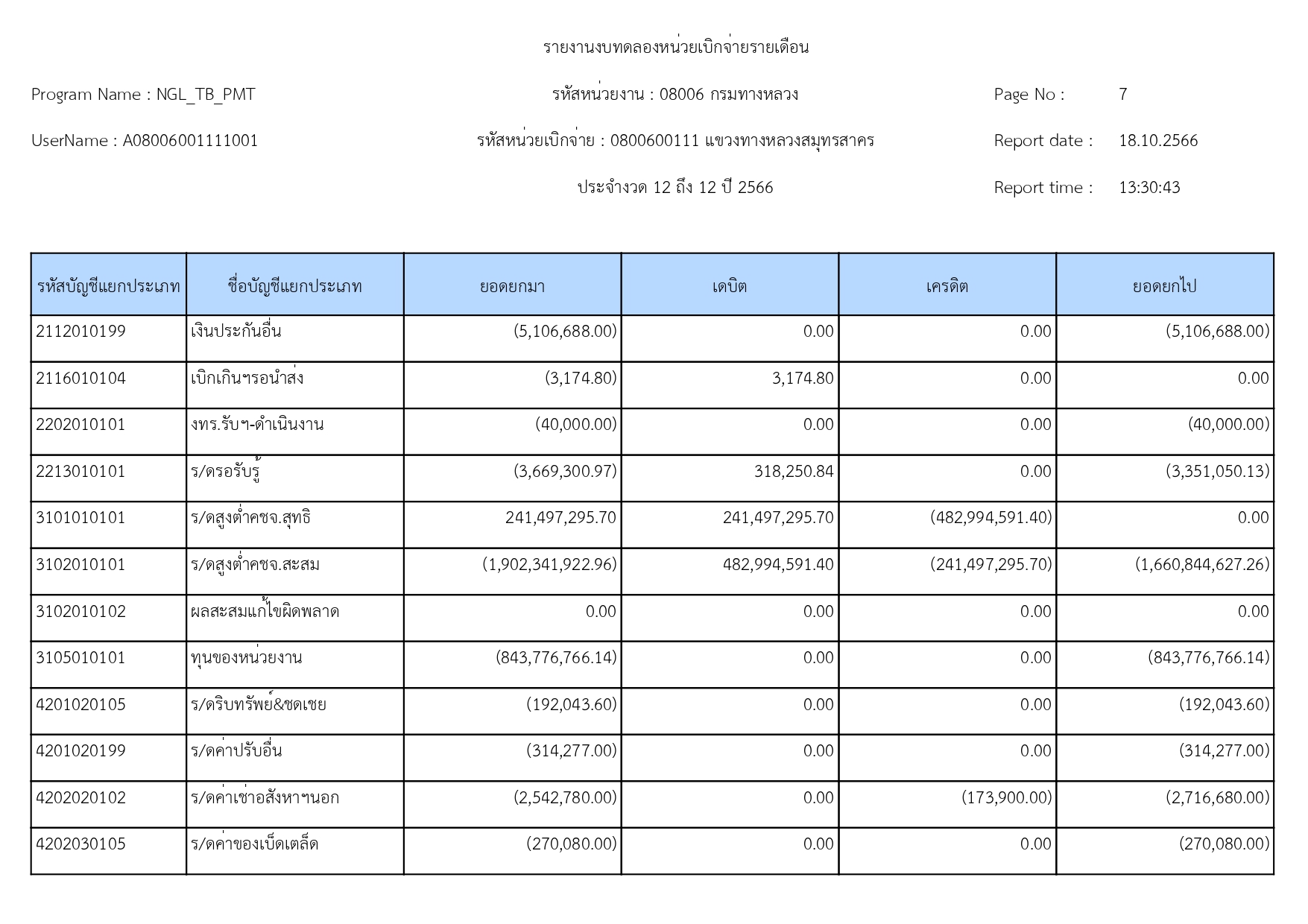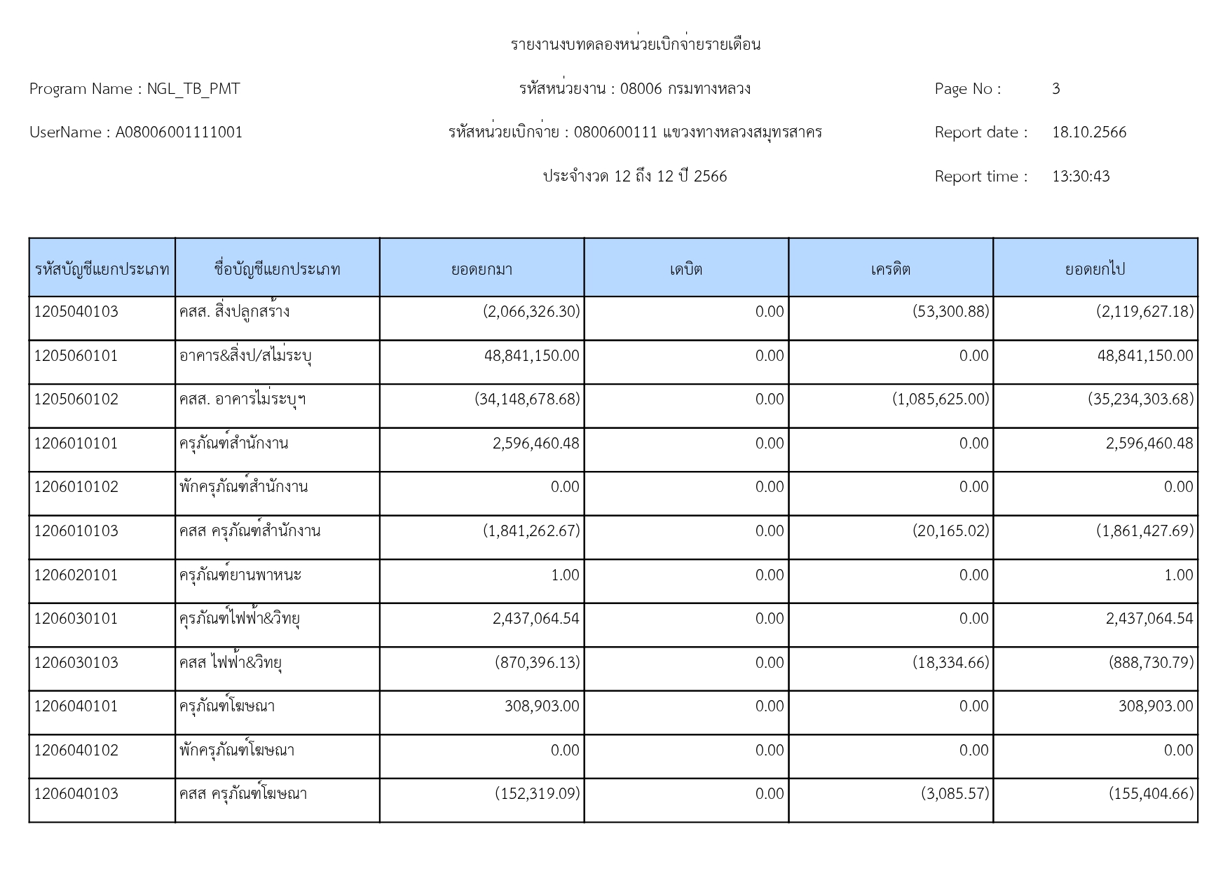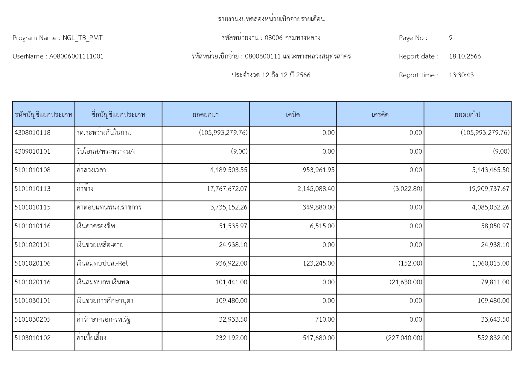 รายงานงบทดลองแขวงทางหลวงสมุทรสาคร ประจำเดือน กันยายน 2566