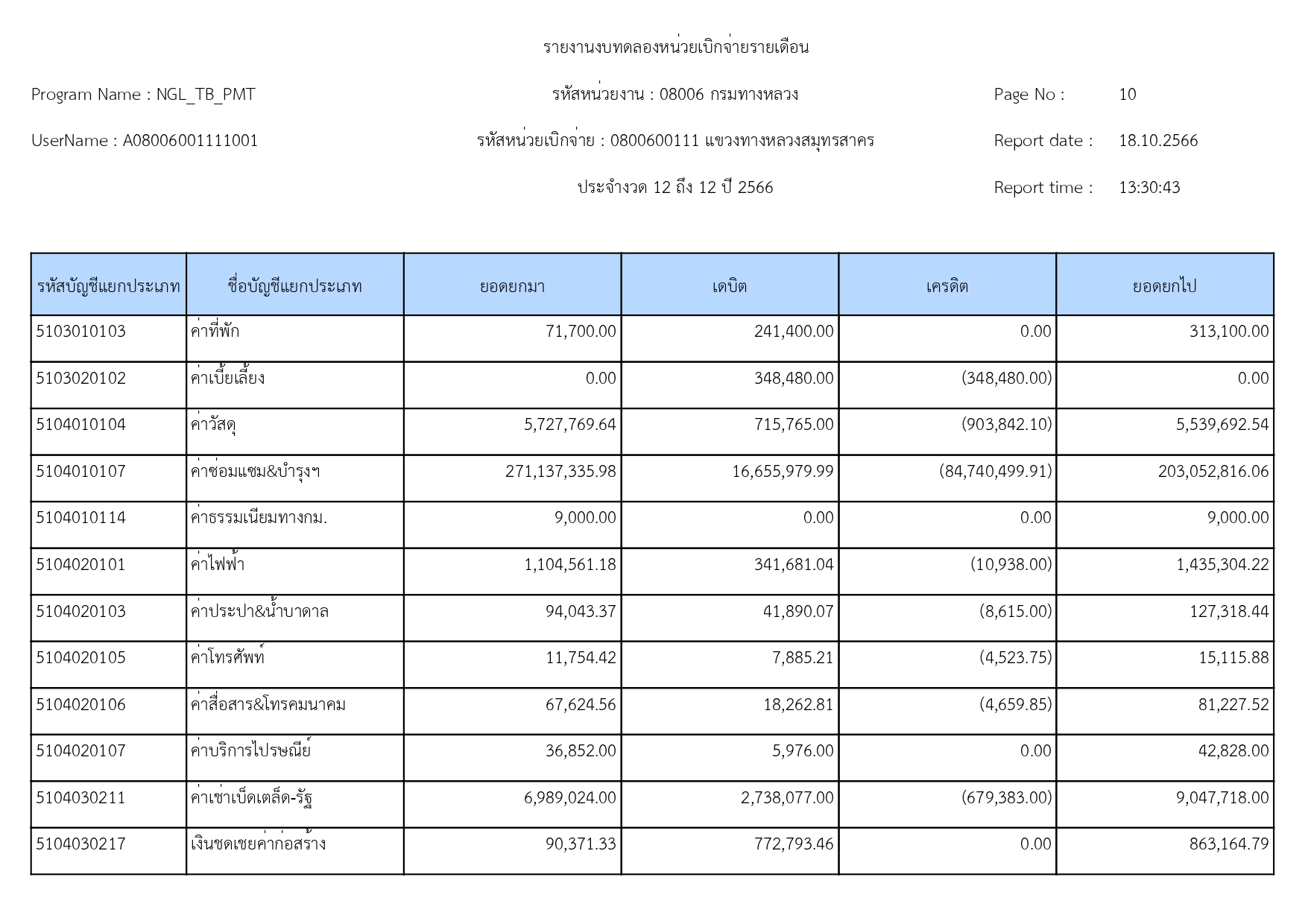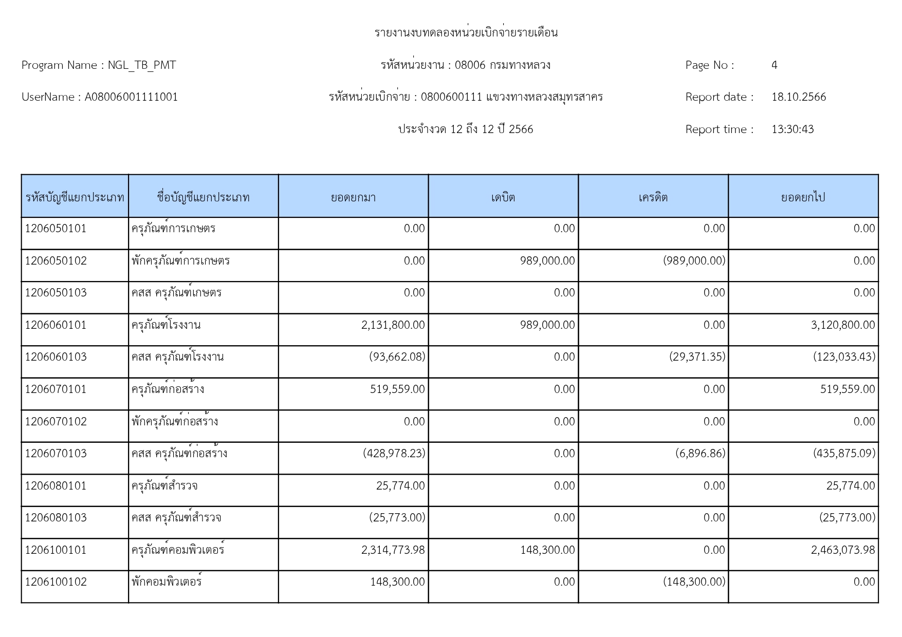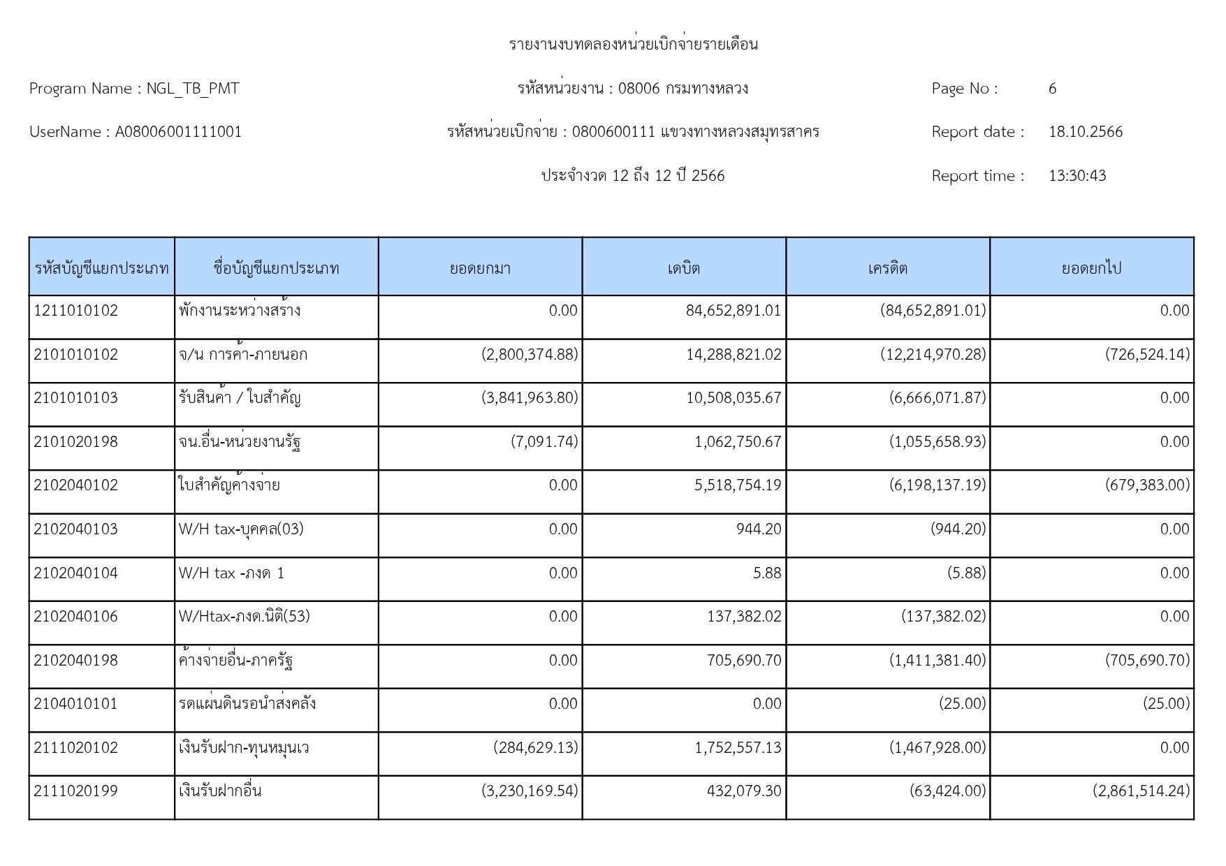 รายงานงบทดลองแขวงทางหลวงสมุทรสาคร ประจำเดือน กันยายน 2566