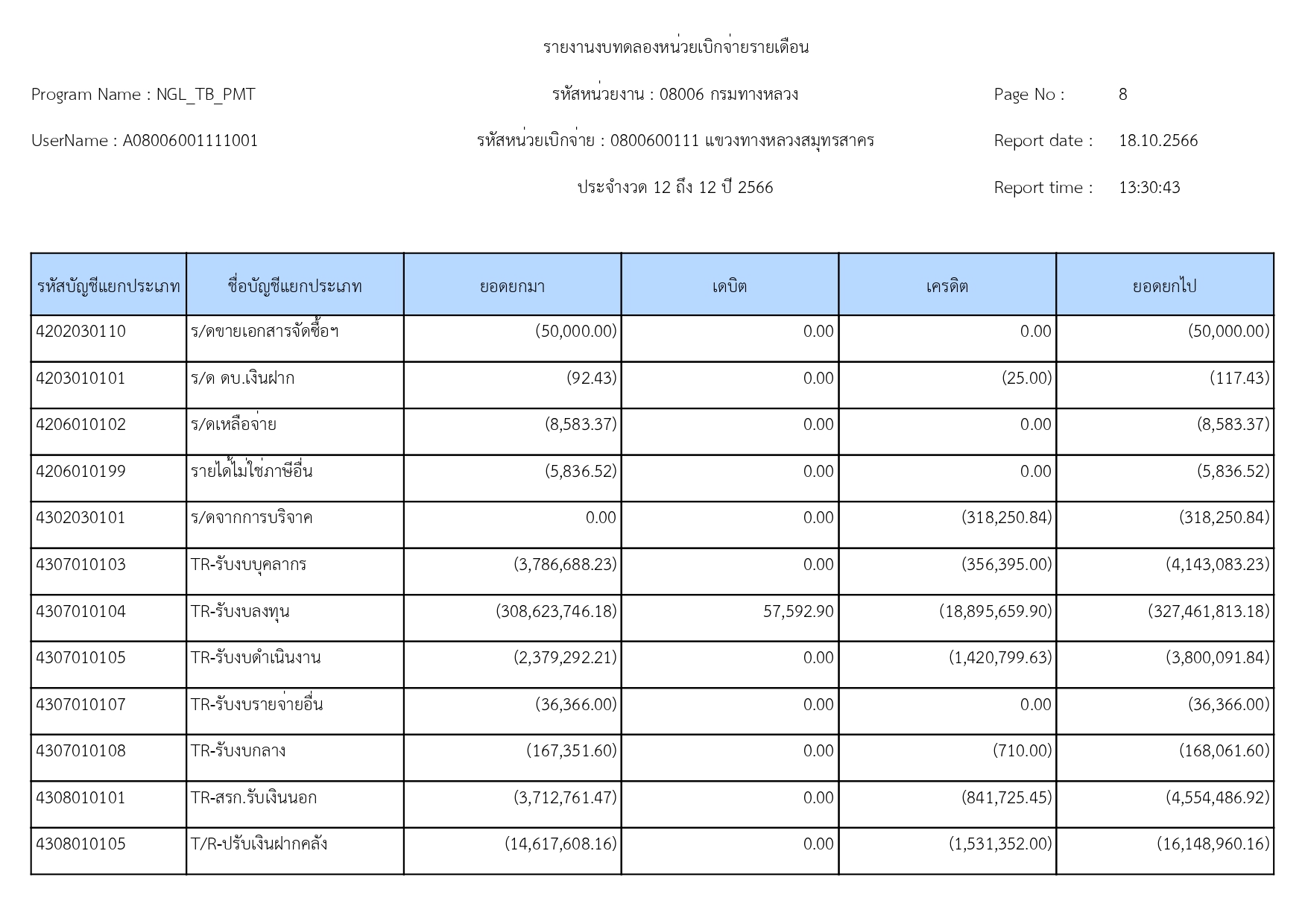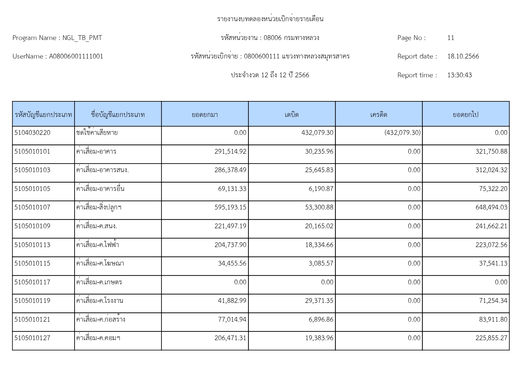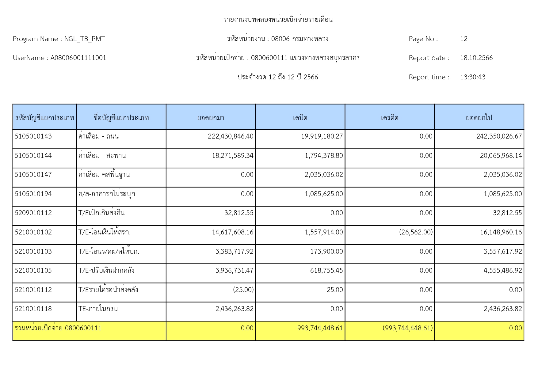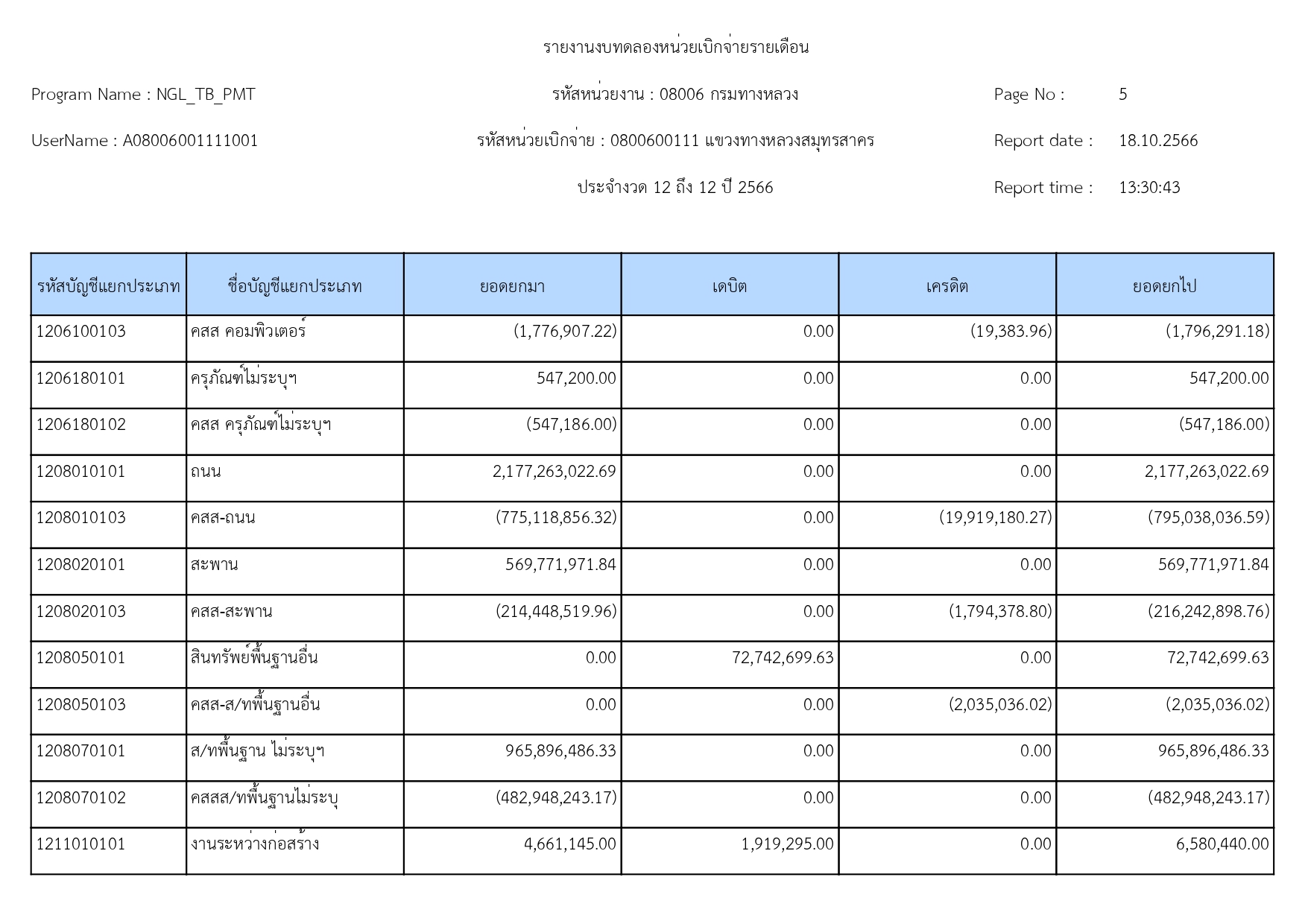 รายงานงบทดลองแขวงทางหลวงสมุทรสาคร ประจำเดือน กันยายน 2566