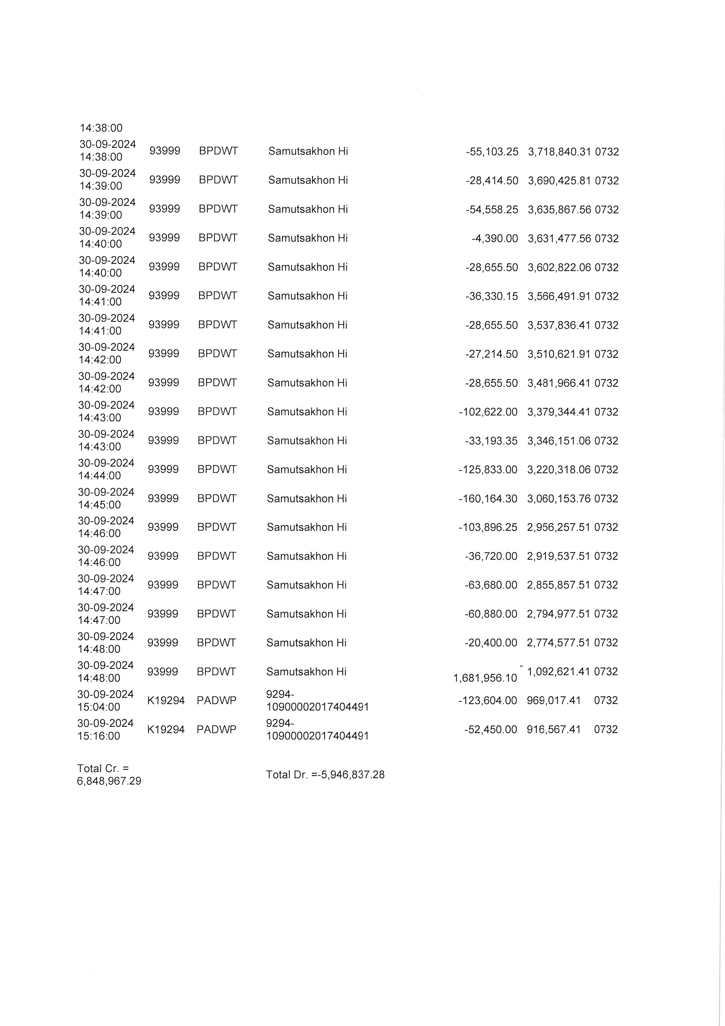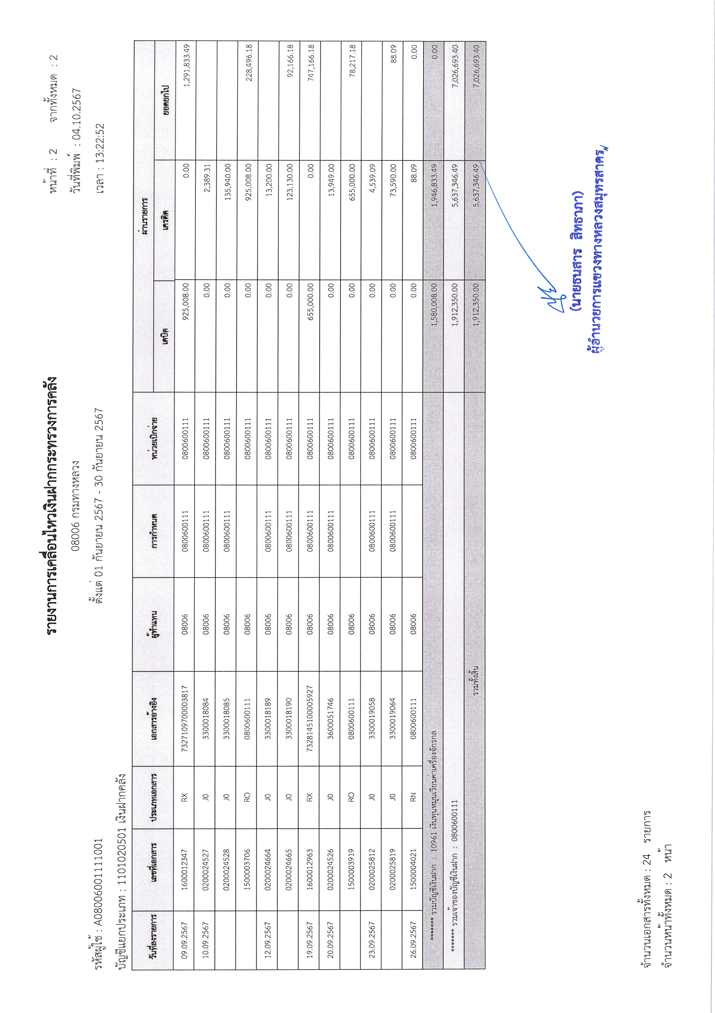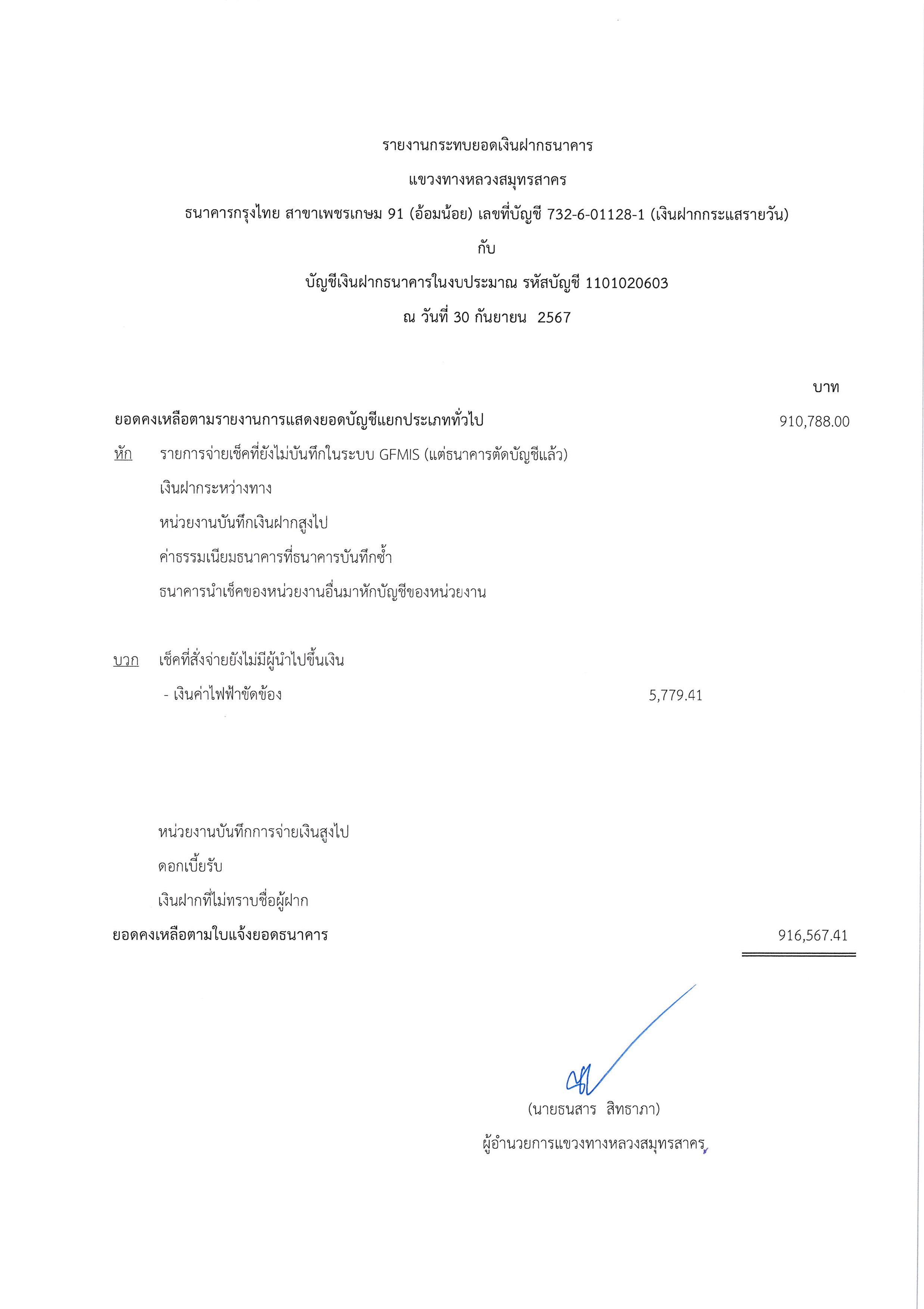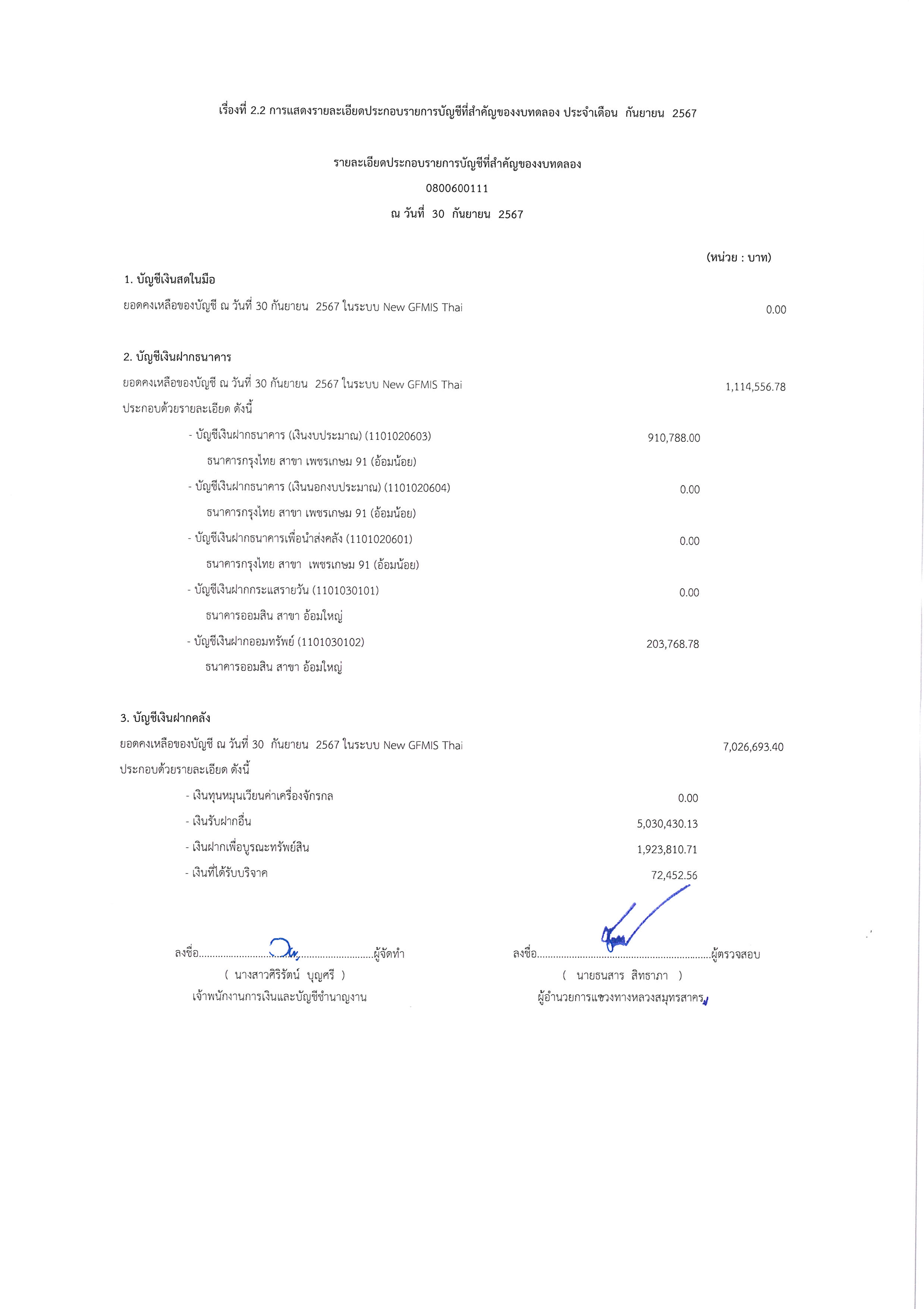 แขวงทางหลวงสมุทรสาครขอส่ง..การแสดงรายละเอียดประกอบรายการบัญชีที่สำคัญของงบทดลองประจำเดือนกันยายน 2567