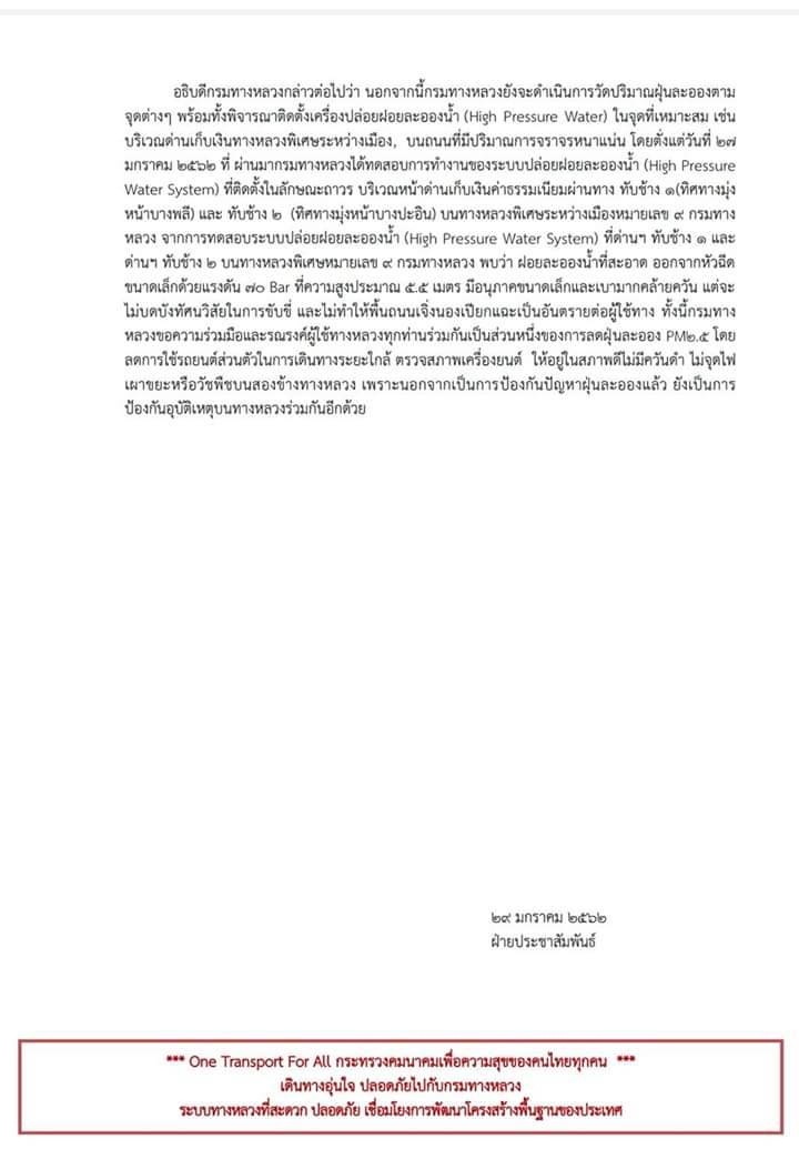 14 31/01/2562 กรมทางหลวง ออกมาตรการป้องกันและแก้ไขปัญหาฝุ่นละอองขนาดเล็ก PM2.5